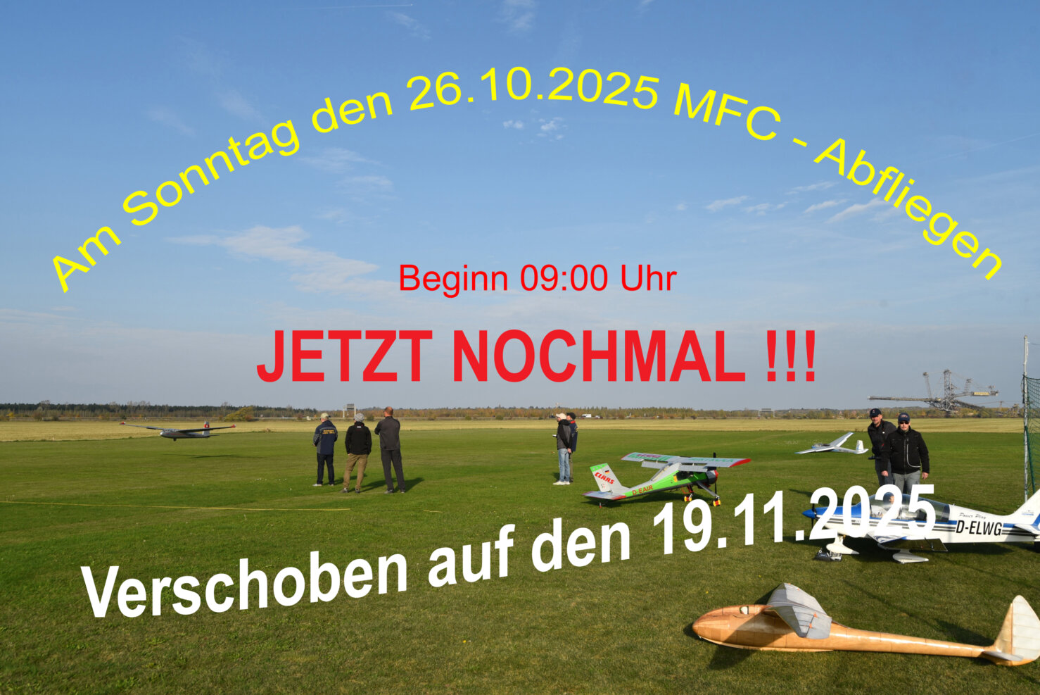 Aufgrund der feuchten und ungemütlichen Wetterprognosen für unser „Verschobenes Abfliegen“ haben wir dieses auf den 19.11.2025 verlegt.